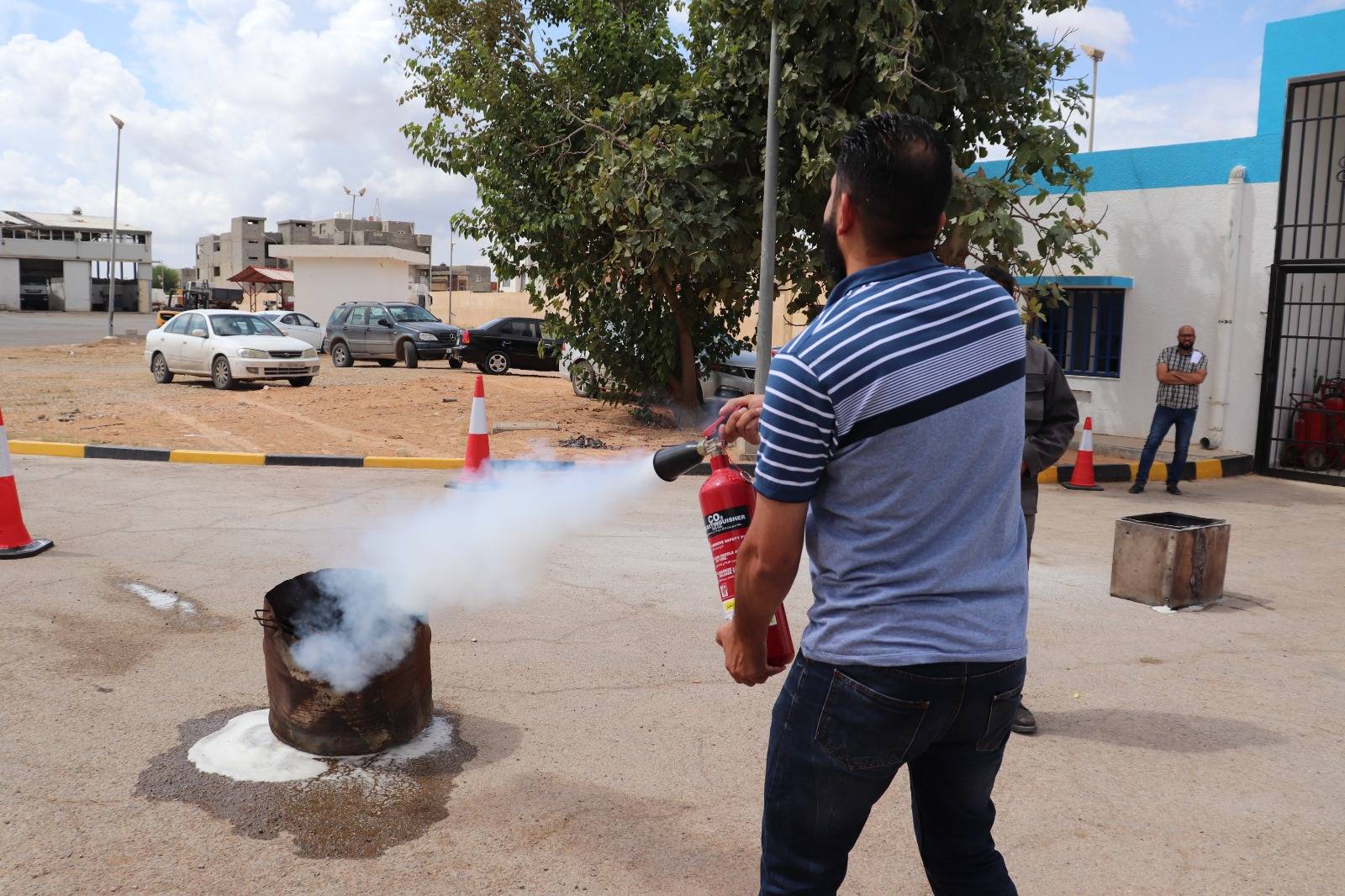 حيث تم تهيئة المستخدمين من اجل عمليات الاخلاء وطريقة استخدام اسطوانات الاطفاء والسلامة المهنية وكانت مدة التدريب 15 يوما ، تمكن فيه المتدربون من اتمام التدريب العملى والنظري ..